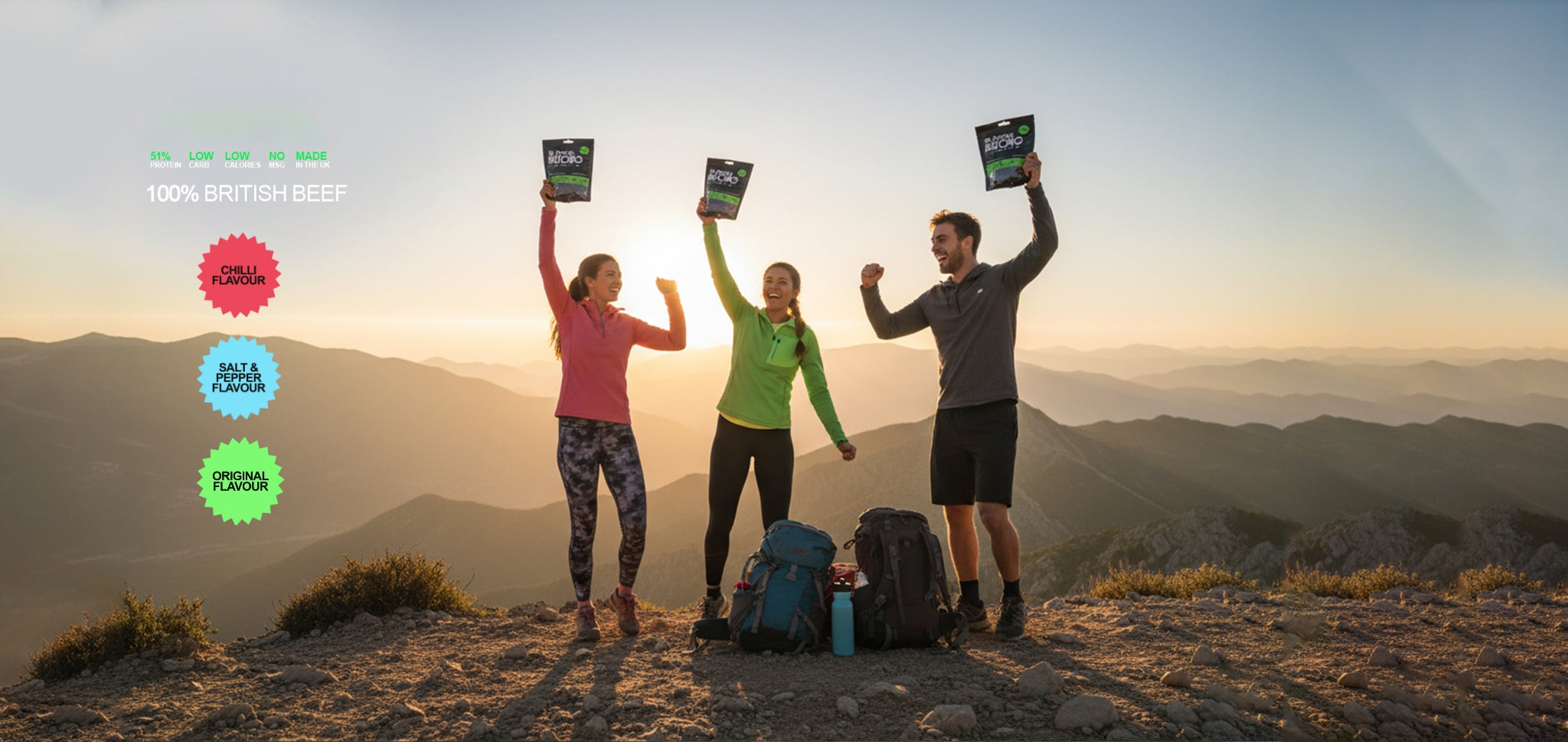 Every batch is made with a commitment to quality at every stage. Carefully selected British beef, lightly seasoned and slowly air-dried to preserve natural flavour and maximise protein. No MSG. No added sugar. Just clean, high-quality nutrition, crafted with intention and care.